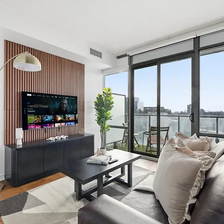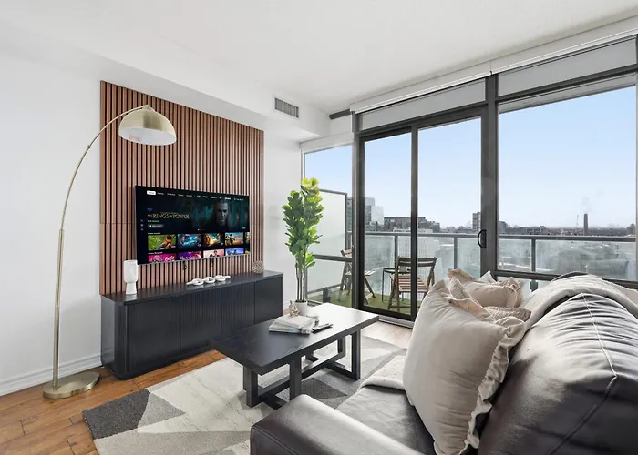 Où trouver spacieux Chic Bay St Condo Skyline Views 55 Tv ?